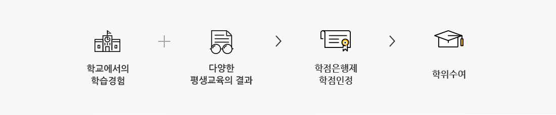 - 온라인강의, 자격증취득, 독학사 등의 여러 방법을 통해 학점을 취득하고 일정 기준 이상 학점을 쌓으면 학위를 수여 받을 수 있는 국가제도- [학점인정 등에 관한 법률]에 의거하여 학교뿐만 아니라 학교 밖에서 이루어지는 다양한 형태의 학습 및 자격을 학점으로 인정받을 수 있도록 하고, 이를 통한 학위취득을 가능하게 함으로써